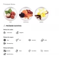 O caminho escolhido foi um blend floral com muita baunilha, seguindo o gosto pessoal da Nah. Para iniciar a composição eu escolhi notas cítricas que remetem a alegria e aqui destaco a tangerina, que inaugura a saída deste perfume com alto astral, abrindo o caminho para o blend floral cremoso e quente nas notas de corpo. Eu escolhi uma combinação cremosa e quente entre avelã, caramelo e mel, que representa a doçura envolvente da Nah. Nas notas de fundo eu representei seu lado elegante com notas amadeiradas de sândalo, cashmere e a baunilha indiana.