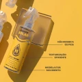 - Faça cachos bem definidos com o babyliss, agite o spray e borrife uniformemente no cabelo. Você pode usar um difusor ou esperar secar naturalmente. Finalize soltando as ondas com as mãos ou com algumas gotas de óleo capilar para mais brilho.