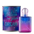 Nesta embalagem, a Deo Colônia Dream 100ml acompanha uma lata exclusiva e reutilizável, para você guardar acessórios ou decorar sua penteadeira.