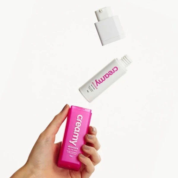 Contém ainda a alantoína, um ingrediente que hidrata e impede o ressecamento, acalmando a pele e minimizando a vermelhidão causada pelo ácido. O ácido mandélico da Creamy também possui ativos que ajudam no controle da acne e da oleosidade.